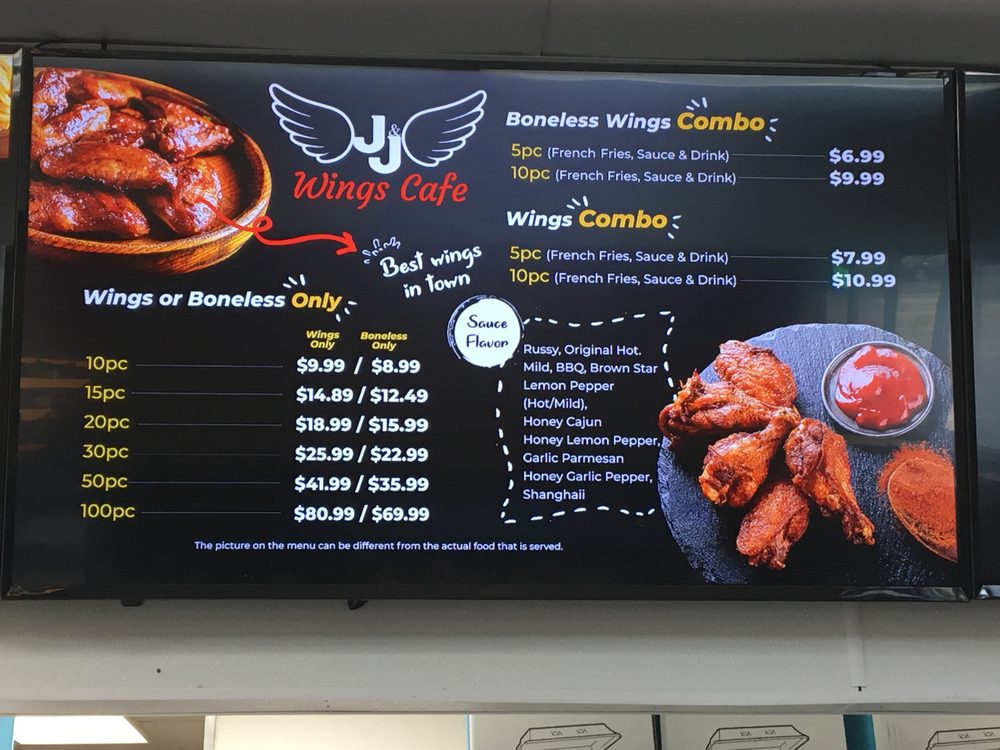 J & J Wings Cafe Menu
